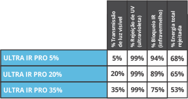 As películas de controle solar ULTRA IR PRO, ULTRA IR CRISTAL E ULTRA IR PSX 5MIL, possuem garantia contra: descascamentos, rachaduras, falhas adesivas, desmetalização, delaminação e desbotamento pelo período de garantia.